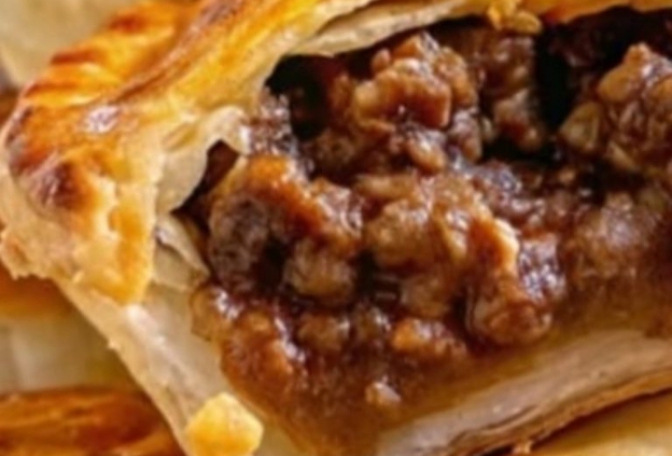Ingredients:For the Pastry:2 cups all-purpose flour1/2 tsp salt1/2 cup cold unsalted butter, cubed1/4 cup cold waterFor the Filling:1 tbsp vegetable oil1 medium onion, finely chopped1 garlic clove, minced1 lb ground beef2 tbsp tomato paste1 tbsp Worcestershire sauce1 cup beef stock1 tbsp cornstarch mixed with 2 tbsp water (for thickening)Salt and pepper, to tasteOptional: 1/2 cup frozen peas or diced carrots for added textureFor Assembly:1 egg, beaten (for egg wash)Instructions:1. Make the Pastry:In a large bowl, combine the flour and salt.Cut in the cold butter using a pastry cutter or your fingertips until the mixture resembles coarse crumbs.Gradually add the cold water, mixing until the dough comes together. Add a little more water if necessary.Form the dough into a disk, wrap it in plastic wrap, and refrigerate for at least 30 minutes.2. Prepare the Filling:Heat the vegetable oil in a skillet over medium heat.Add the onion and sauté for 5 minutes, until softened.Stir in the garlic and cook for another minute.Enjoy!