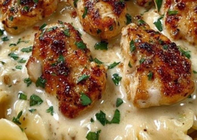 Here’s a comforting and indulgent recipe for Garlic Butter Chicken Bites with Creamy Parmesan Pasta—perfect for a cozy dinner!