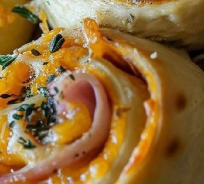 Ingredients:1 pound pizza dough (homemade or store-bought)12 slices smoked ham (thinly sliced)1 1/2 cups shredded sharp cheddar cheeseInstructions:Preheat your oven to 375°F (190°C) and line a baking sheet with parchment paper.On a floured surface, roll out the pizza dough into a 1/4-inch-thick rectangle.Lay the ham slices over the dough, leaving a small border around the edges.Evenly spread the shredded cheese over the ham.Roll the dough tightly from a long edge, as you would a jelly roll.Cut the log into 1-inch sections and place them on the baking sheet.Bake for 18-20 minutes until golden brown and the cheese is bubbly.Let cool slightly before serving.Variations & Tips:Add red pepper flakes or hot sauce to the cheese for a spicy kick.Experiment with different cheeses like Gruyere, Swiss, or smoked provolone.For a vegetarian version, use sautéed spinach and mushrooms (drained of moisture) instead of ham.Brush the tops with melted butter and garlic powder before baking for extra indulgence.Let the dough rest at room temperature for easier handling.Feel free to customize these roll-ups with your favorite ingredients, keeping in mind not to overstuff them. Enjoy the process and the delicious result of this simple, yet delightful dish!Enjoy!
